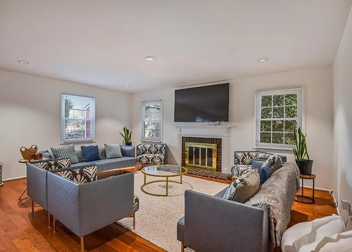 De accommodatie is uitgerust met zelfvoorzienende voorzieningen, waaronder een ingerichte kitchenette en een eethoek buiten waar gasten van kunnen genieten. U kunt ook gebruikmaken van een oven en een vaatwasser om uw eigen maaltijd te bereiden. De gesitueerde in Fairfax Cozy 4Br Retreat - Private Backyard, Gazebo & Grill Villa ligt binnen 10-minuten rijafstand van Chick-fil-A, waar Amerikaanse gerechten worden geserveerd.